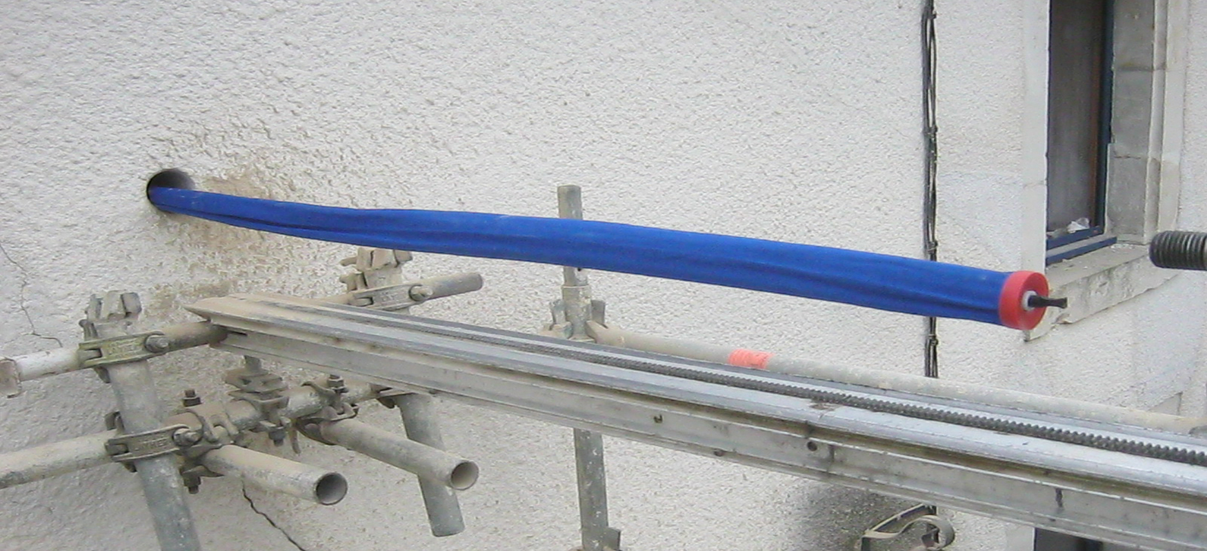 Création de chaînages dans l’épaisseur des éléments structurels (pierre, brique, maçonneries creuses ou pleines, moellons, béton armé…).